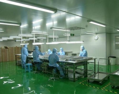 無塵車間空調(diào)機(jī)組開箱前檢查外包裝有無損壞和受潮(shòu cháo),開箱后認(rèn)真核對(duì)設(shè)備及各段的名稱、規(guī)格、型號(hào)、技術(shù)條件是否符合設(shè)計(jì)要求;檢查表冷器的凝結(jié)(condensation)水部分是否暢通、有無滲漏(seepage),加熱器及旁通閥是否嚴(yán)密、可靠,過濾器零部件是否齊全、濾料及過濾形式是否符合設(shè)計(jì)要求;取下通風(fēng)機(jī)(Draught Fan)段活動(dòng)板或通過檢查門進(jìn)入,用手盤動(dòng)通風(fēng)機(jī)葉輪(指裝有動(dòng)葉的輪盤),檢查有無與機(jī)殼相碰以及通風(fēng)機(jī)減振部分是否符合要求。無塵室裝修公司層流式空氣氣流運(yùn)動(dòng)成一均勻之直線形,空氣由覆蓋率100%之過濾器進(jìn)入室內(nèi),并由高架地板或兩側(cè)隔墻板回風(fēng),此型式適用于無塵室等級(jí)需定較高之環(huán)境使用,一般其無塵室等級(jí)為Class 1~100。一般裝配(assemble)式空調(diào)器,表面式換熱器應(yīng)有合格證,在規(guī)定期間內(nèi)外表面無損傷時(shí),安裝前可不做水壓(特指:壓強(qiáng))試驗(yàn),否則應(yīng)做水壓試驗(yàn),試驗(yàn)壓力等于系統(tǒng)最高工作壓力的1.5倍,且不低于0.4Mpa試驗(yàn)時(shí)間為2-3min,壓力不得下降(descend),空調(diào)器內(nèi)擋水板安裝前后不得撞翻,并將機(jī)組清理干凈箱體(BOX)內(nèi)無雜物;現(xiàn)場(chǎng)有多套空調(diào)機(jī)組安裝前,將段體進(jìn)行編號(hào),切不可將段位互換調(diào)錯(cuò);從空調(diào)機(jī)組一段開始,逐一將段體抬上底座就位找正,加襯墊,將相鄰兩個(gè)段體用螺栓(組成:頭部和螺桿組成)連接牢固嚴(yán)密,每連接一個(gè)段體前,將內(nèi)部清掃干凈,組合式空調(diào)機(jī)組各功能段間連接后,整體應(yīng)平直,檢查門開啟要靈活,水路暢通;加熱段與相鄰段體間應(yīng)采用耐熱材料作為墊片;噴淋段連接處要嚴(yán)密、牢固可靠,噴淋段不得滲水,噴淋段的檢視門不得漏水,積水槽(The sink)應(yīng)清理干凈,保證冷凝水暢通不溢水;凝結(jié)水管應(yīng)設(shè)置水封,水封高度根據(jù)機(jī)外預(yù)壓確定,防止空氣調(diào)節(jié)器內(nèi)空氣外漏或室外空氣進(jìn)來。